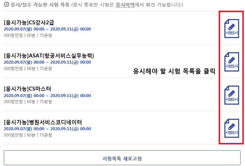 - 응시/접수 가능한 시험 목록이 없는 경우 시험 관리자에게 문의해주세요.